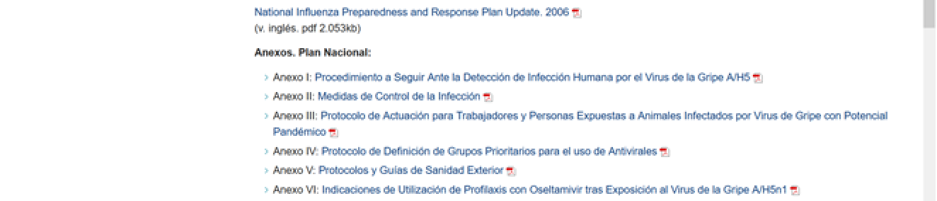 En el año 2005, tras la crisis del Coronavirus SARS y del subtipo Coronavirus CoV-HKU1 (Gripe Aviar), técnicos del Ministerio de Sanidad, elaboraron y redactaron una serie de documentación en un plan sobre medidas de actuación ante pandemias, actualizado y completado (desde 2006) con anexos en años posteriores, aplicable a otros virus pandémicos en general, como el propio plan explicita y que es público en la página web del Ministerio (hasta que lo retiren).