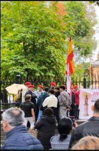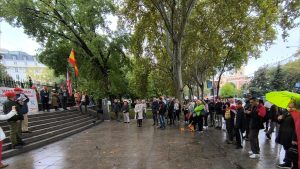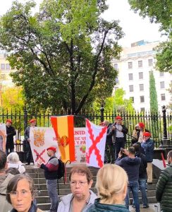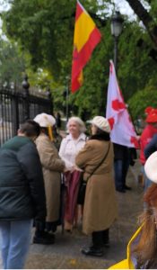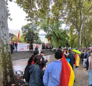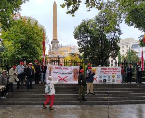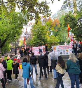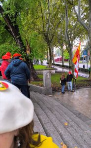 La gente se acercó y escuchó las magníficas intervenciones de José Antonio y Christoph, jóvenes rodeaban a nuestros correligionarios. Todo estaba en contra, qué sorpresa, PUES COMO SIEMPRE. Hasta algún militar se cuadro al oír el ORIAMENDI. Un acto difícil pero muy bendecido. Nuestra Madre nos cubrió y no olvidéis al Señor que le agradan los audaces. Ayer lo más hermoso fue aguantar antes la lluvia y la presión interna y externa que nos gritaba ¡no vayas! Cuando esto pase recordad dos cosas: