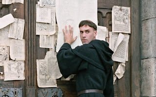 Mucho se está hablando últimamente de la conmemoración del quinto centenario de la Reforma protestante, que se originó grosso modo un 31 de octubre del año 1517. En efecto, esa fecha es conocida por ser el día en que Lutero clavó sobre la puerta de la iglesia de Wittenberg sus famosas 95 tesis, que tenían como principal objetivo la autoridad del papado y la doctrina sobre las indulgencias. Es curioso que hoy se hagan multitud de alabanzas al citado reformador, pese a los problemas que le causó a la vieja Europa; incluso es sorprendente que alguna de ellas provenga del mismísimo Vaticano, que fue deplorado e insultado vilmente por él hasta el instante de su muerte. Por este motivo, nosotros queremos acercarnos a su figura, y esclarecer así, en la medida de lo posible, la verdad que subyace tras ella. Para ello, y como siempre, recurriremos al séptimo arte, que nos ha legado hasta donde sabemos dos biopics ciertamente irregulares y casi homónimos: Martín Lutero (Irving Pichel, 1953) y Lutero (Eric Till, 2003). De los dos, nos interesa el segundo, puesto que no solo es más conocido, sino que le sirvió a la Iglesia protestante para purificar la imagen de su fundador, menospreciada incluso por sus correligionarios.