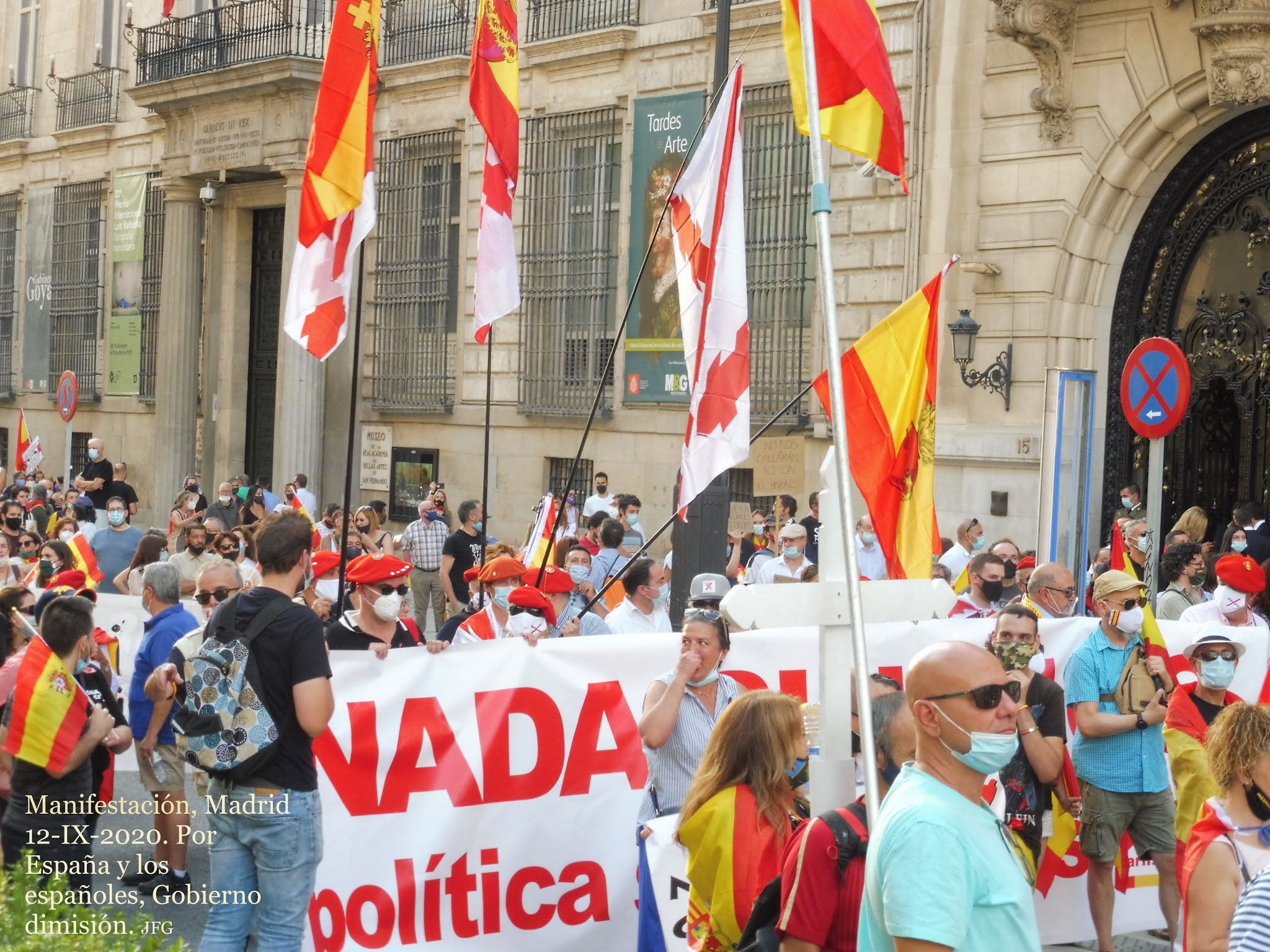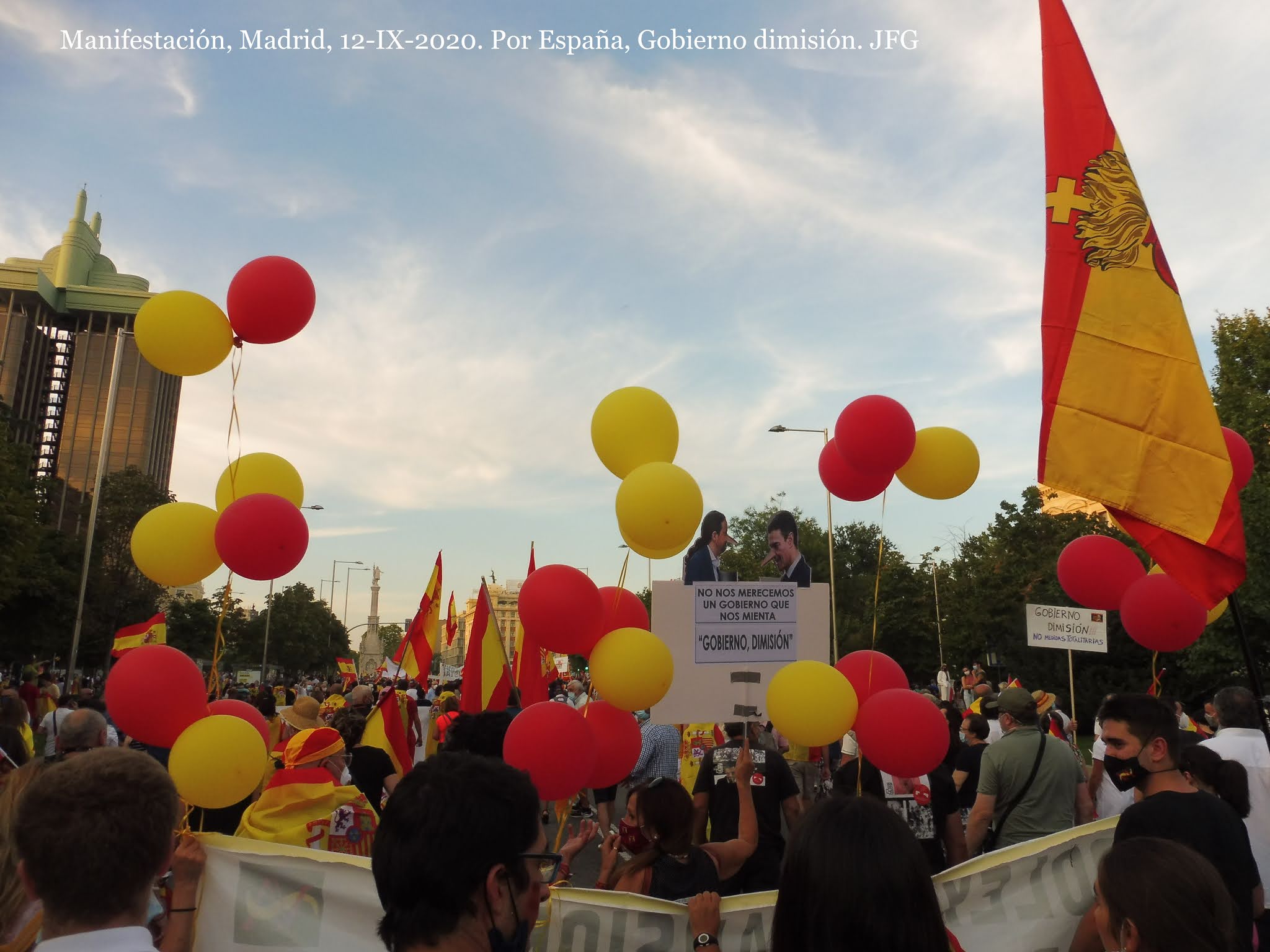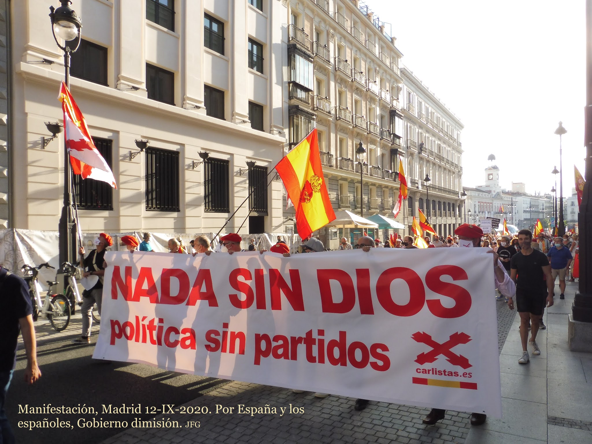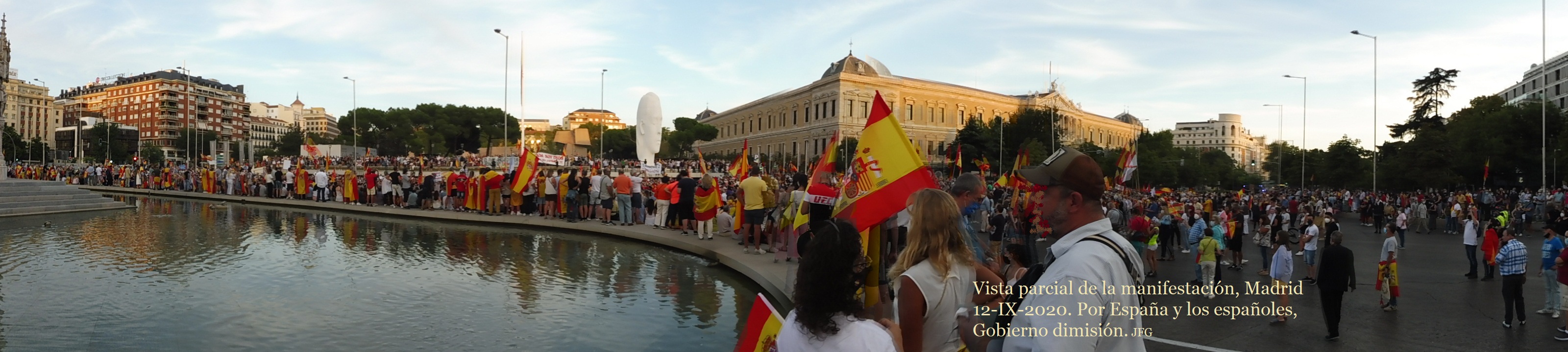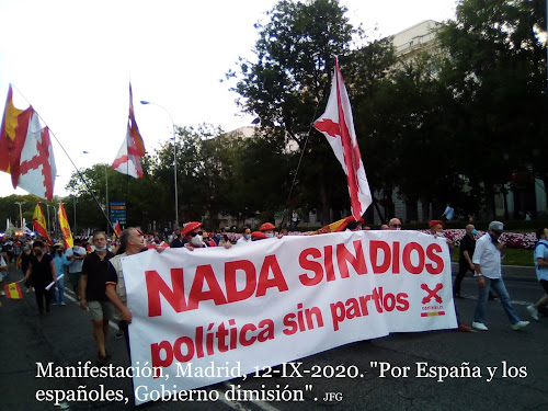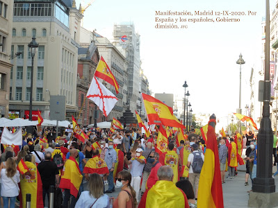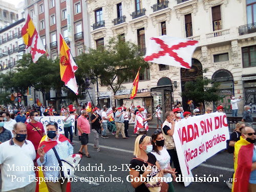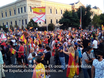 El pueblo español quiere paz y justicia. Quiere vivir y trabajar sin presiones ni extorsiones. No quiere que traigan virus de fuera y menos de laboratorios chinescos. Este día 12 se dieron cita muchísimas familias y personas de todas las edades. Hubo muchos jóvenes y también personas de edad. Estuvieron representados todos los sectores sociales, con las más diferentes estéticas y formas de vestir. Les unía el amor a su familia y grupo social, y a la patria chica y grande que es España. Les unía el celo por sus libertades personales y de grupo. Hubo muy buen ambiente, y los manifestados dieron ejemplo de respetar personas y propiedades.