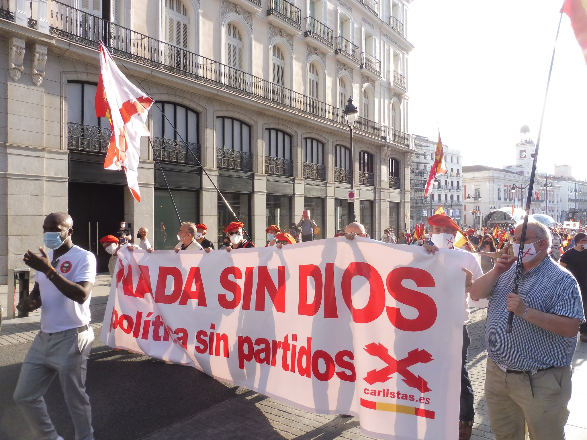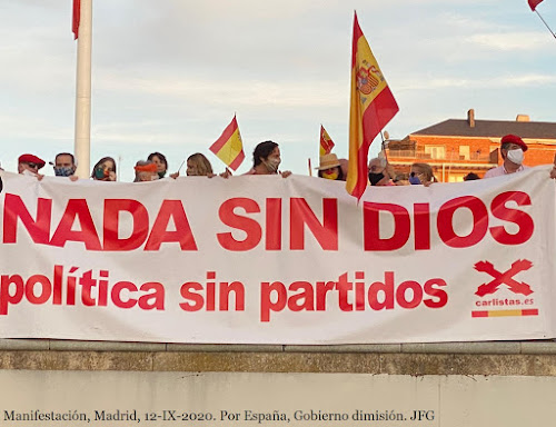Por su parte, la Comunión Tradicionalista Carlista, a la que pertenecemos -y por eso nos hacemos más eco de ella en esta página-, repartió a su vez miles de octavillas a color que llamaban a una regeneración moral, señalando la soberanía social de Cristo como único fundamento de la auténtica libertad. Quienes repartieron advierten que los asistentes buscaban la información escrita que ofrecían.