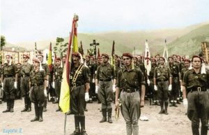 Supongamos un pensamiento a los hombres del pueblo formados de la imagen. ¿Qué diría cada miembro de ésta formación, a Pabla, autor de la segunda viñeta de este artículo? El requeté –el carlista en armas- vivía en una sociedad organizada y desarrollada según su época. Es imposible pensar en estos soldados en formación, sin una sociedad amplia y activa en todos los ámbitos, aunque esto no lo vean los políticos liberales –es lógico-, ni algunos historiadores.  Movidos por ideales, los requetés sobrepasaron las épocas. Los carlistas no fueron los últimos románticos y su núcleo vital sobrepasa y une las diferentes etapas. Hasta hoy. Optan por el iusnaturalismo y el derecho público cristiano, por la concreción más allá de la abstracción, y no por el fluido romanticismo, aunque vivan virtudes como la fidelidad y el honor tan caras en la literatura romántica. Hombres de familia y arraigados, poco o nada tienen que ver con el navarro Xavier Mina (el joven) o los camisas rojas del italiano Garibaldi. Muchas veces en tiempos de paz, los carlistas vieron desfilar delante de ellos los cadáveres políticos de sus enemigos.